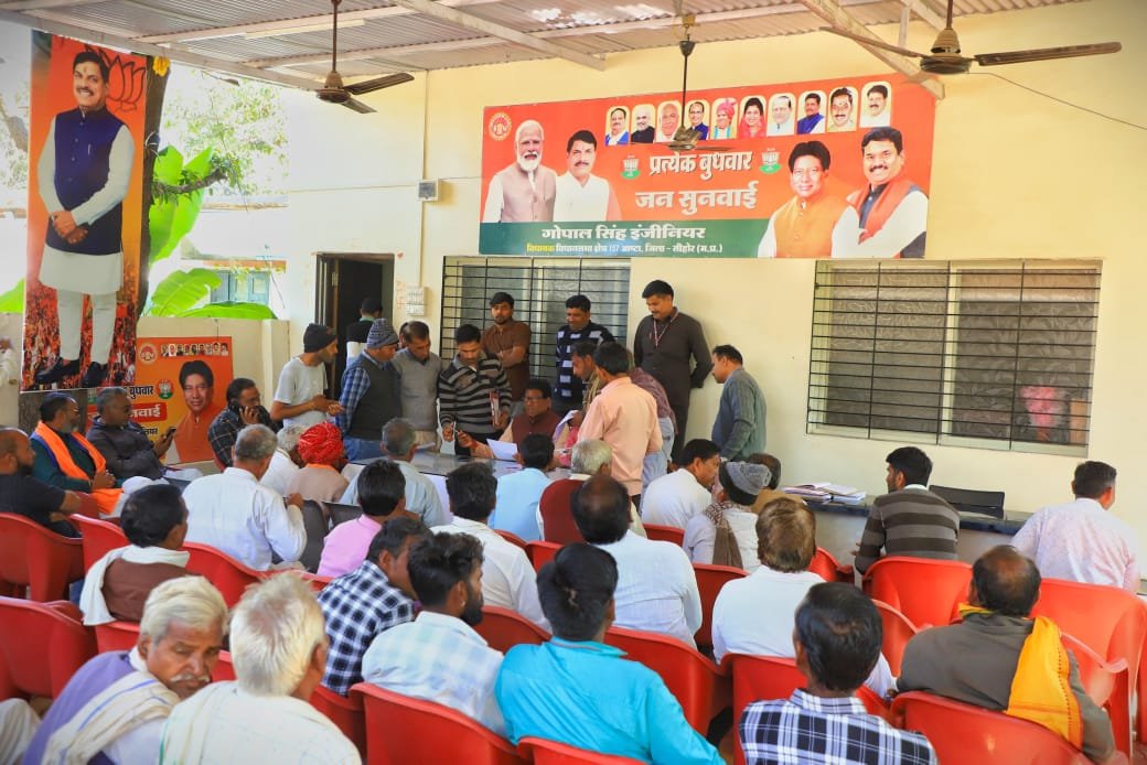 विधायक गोपालसिंह इंजीनियर ने कार्यालय आये सभी नागरिको को भरोसा दिया कि आपकी समस्याओं का जल्द निराकरण होगा,जो मांग शासन स्तर की है उनेह वे शासन तक पहुचायेंगे। विधायक कार्यालय से जानकारी देते हुए बताया की आज जनसुनवाई में आये ग्रामीणों ने ग्राम अमरपुरा में मांगलिक कार्य हेतु भवन धर्मशाला / मांगलिक भवन निर्माण,दिव्यांग हेतु रोजगार प्रदाय कराने,विद्युत देयक का समायोजन, विद्युत प्रकरणों का समाधान कराने।